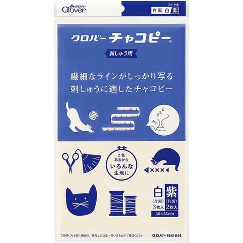 【1000円以上お買い上げで送料無料♪】クロバー チャコピー 刺しゅう用 片面・白&紫セット 30×25cm 5枚入 図案 しるし付け デニム リネン 裁縫道具 手芸 趣味 日本製 - メール便発送