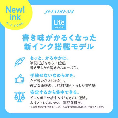 “かろやか”なインク『JETSTREAM Lite touch ink (ジェットストリーム ライトタッチインク)』搭載モデルです。