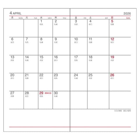 1ヶ月の予定を曜日ごとに管理しやすい、カレンダーと同じ感覚で使える月間レイアウトです。簡単に予定を管理したい人や曜日ごとの決まった予定の多い方におすすめです。こちらの商品はスモールサイズです。