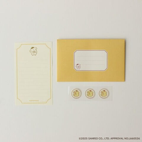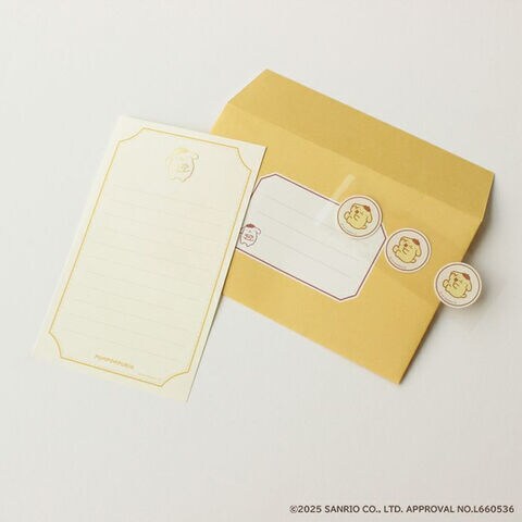 ポムポムプリン 箔押し ミニレターセット 便箋 封筒 シール 手紙 手書き風イラスト 大人かわいい サンリオ 古川紙工