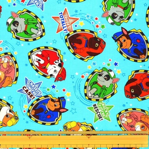 人気キャラクター「パウ・パトロール」のオックス生地です。入園・入学用品の手作りに最適です。例えば、ランチョンマット、レッスンバック、お弁当袋、給食袋、コップ袋、シューズケース、体操着入れ、マスクなどの手作り素材におすすめです。