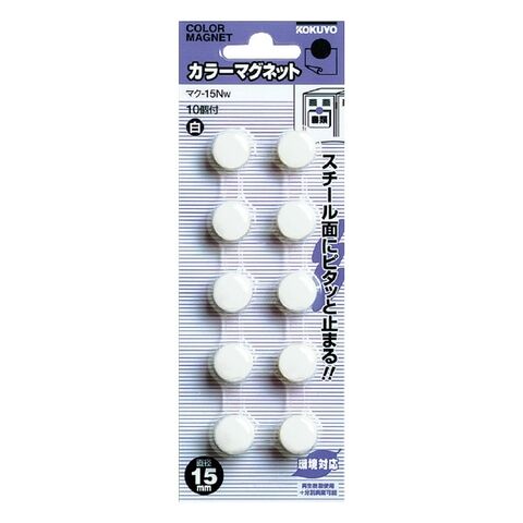 【1000円以上お買い上げで送料無料♪】コクヨ カラーマグネット10個入り 直径15mm 白 - メール便発送