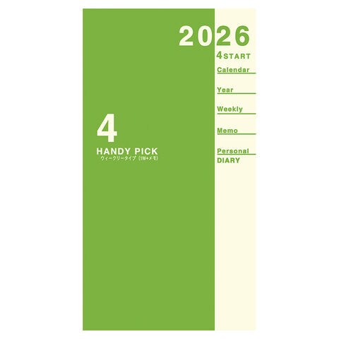 【1000円以上お買い上げで送料無料♪】ダイゴー 2026年 手帳・ダイアリー 4月始まり ハンディピック 手帳 1週間+横罫 グリーン - メール便発送