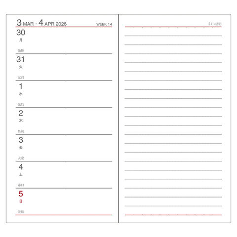 【レイアウト】1週間+横罫 ウィークリー 週間 レフト