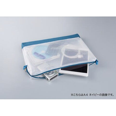 【送料無料】メッシュケース マチ補強タイプ B5 ネイビー 丈夫 整理整頓 小物入れ 収納 カウネット - メール便発送