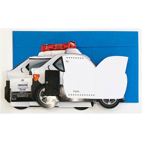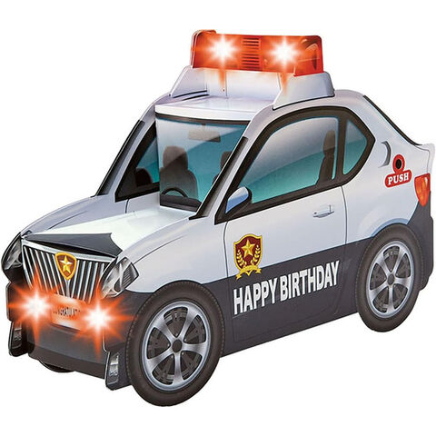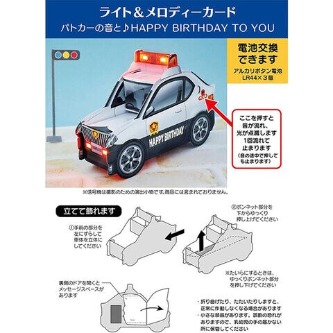 【送料無料】グリーティングカード 誕生日祝い ライト&メロディー パトカー はたらくくるま バースデー 封筒付 立体 サンリオ - メール便発送