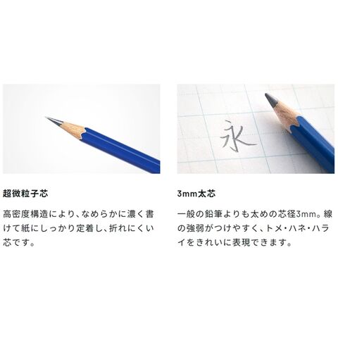 一般の鉛筆よりも太めの芯径3mmで、線の強弱がつけやすく、トメ・ハネ・ハライをきれいに表現できます。