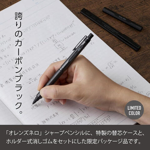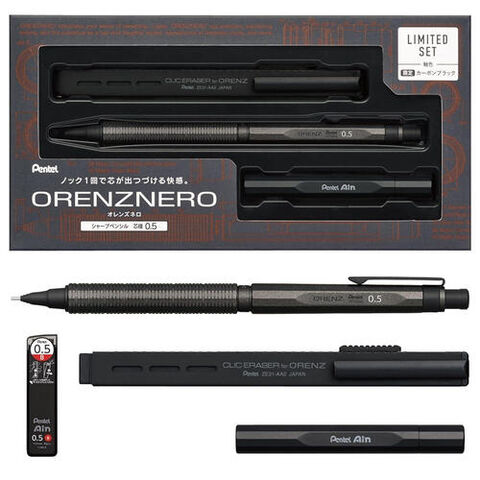 限定セット シャープペンシル オレンズネロ 0.5mm B カーボンブラック軸 金属製替芯ケース ホルダー式消しゴム ぺんてる