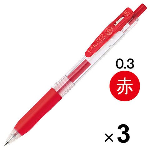 ゼブラ サラサクリップ ジェルインクボールペン 0.3mm 赤 JJH15-R 3本セット