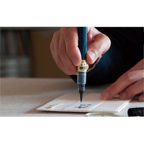 筆跡が1秒で乾く「速乾インキ」搭載の筆ペン。筆跡がすぐ乾くので、手や書いたものが汚れません。