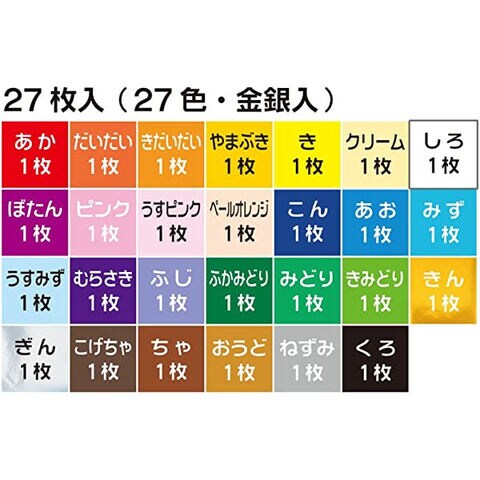 【1000円以上お買い上げで送料無料♪】トーヨー 教育おりがみ 15×15cm 27枚 27色 金銀入 - メール便発送