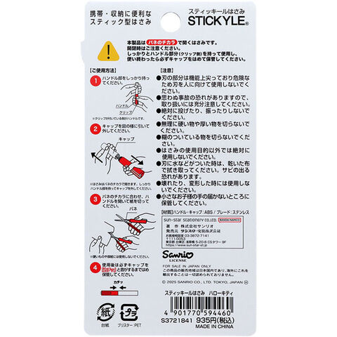 ハローキティ スティッキールはさみ スティック型 クリップ付キャップ 携帯 コンパクト 文房具 かわいい サンスター文具