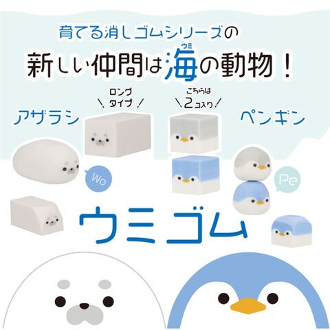 【1000円以上お買い上げで送料無料♪】育てる消しゴム ウミゴム アザラシ ロングタイプ 1個入 ケース入 海の生き物 人気 かわいい サンスター文具 - メール便発送