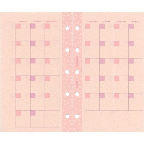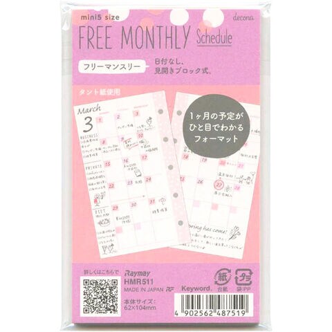 【1000円以上お買い上げで送料無料♪】decona デコナ システム手帳用 リフィル mini5 フリーマンスリースケジュール タント紙 月間ブロック 30枚入 かわいい - メール便発送