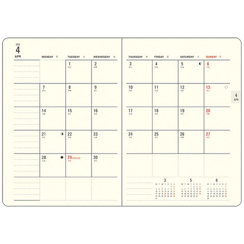 ●色:ピンク●規格サイズ:A6●表紙素材:PVC●ページ数:176●始まり曜日:月曜日●始まり月:3●主レイアウト:1週間+方眼●レイアウト1:ウィークリー●レイアウト2:週間●レイアウト3:レフト●六曜の有無:有●付録:カレンダー・年間スケジュール・バースデー、記念日リスト・ID、パスワードリスト・サイクルカレンダー・換算表・年齢早見表・困ったときの連絡先リスト・パーソナルノート●掲載期間(月間ページ):2025年3月~2026年3月●掲載期間(週間ページ):2025年3月~2026年3月●カタログ名:Appoint MILL 2025-26 DIARY CATALOG●カタログ掲載