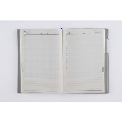 【月間予定表】使いやすいブロック式。欄を上下に区切ってあるので、午前と午後の予定を記入するのに便利です。 【週間予定表】デイリーページには毎日の出来事をたくさん記録できます。優しいブルーグリッドを採用していて、文章だけではなく図やイラストを描くのにも便利です。