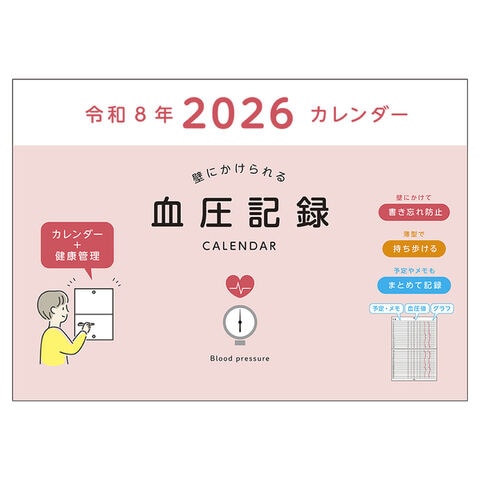 ダイゴー 2026年 手帳・ダイアリー 血圧記録カレンダー 1ヶ月横罫 ピンク