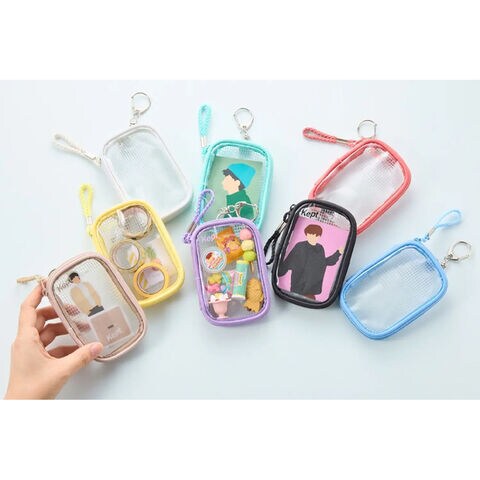 【送料無料】Kept ケプト ミニアクスタケース イエロー 透明 メッシュ繊維入 キーホルダー付 ポーチ デコ 推し活 レイメイ藤井 - メール便発送