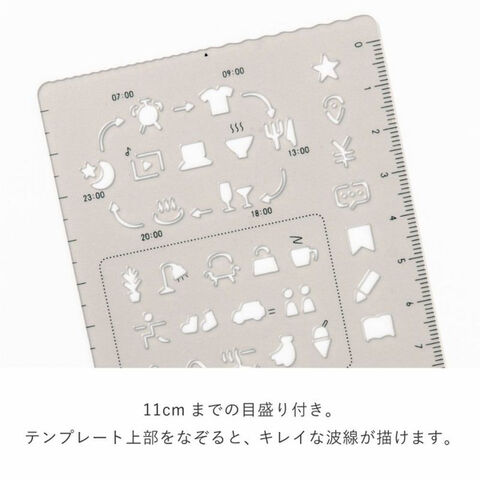テンプレートの端部分には、11cmまでの定規、波線や吹き出しが書ける波線定規付き。