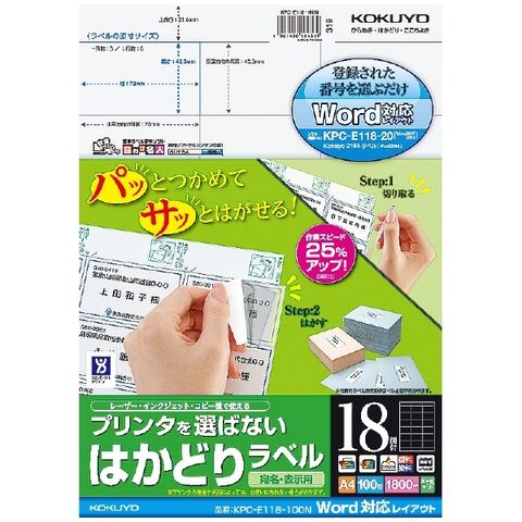 コクヨ プリンタを選ばない はかどりラベル A4 18面 100枚