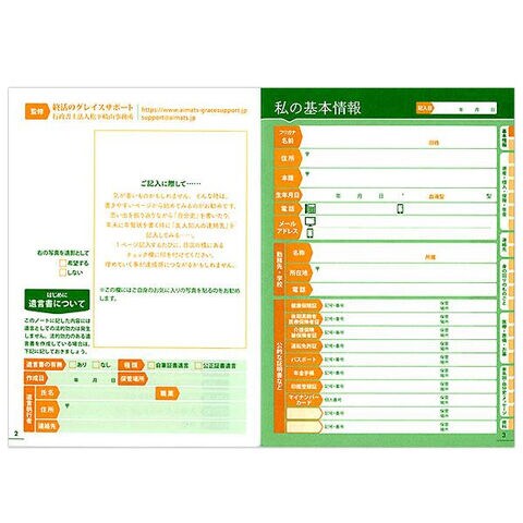 【1000円以上お買い上げで送料無料♪】終活ノート A5 資産 保険 年金 家族 友人 ペット 病気 葬儀 墓 家系図 自分史 フロンティア - メール便発送のレビュー