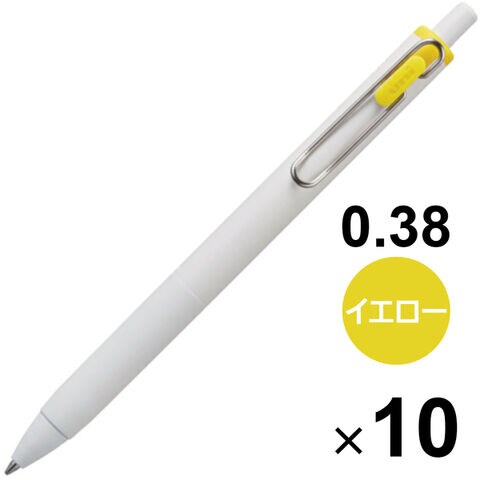 【送料無料】【10本セット】 ゲルインクボールペン uni-ball one ユニボール ワン 0.38mm イエロー ノック式 速乾 高発色 勉強 受験 三菱鉛筆 - メール便発送