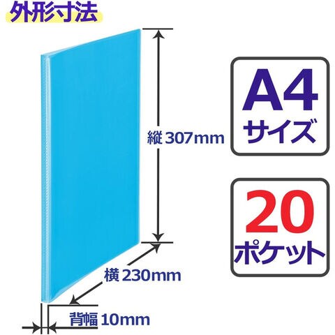 【1000円以上お買い上げで送料無料♪】プラス クリアファイル シンプルクリアーファイル A4 20ポケット ブルー FC-220SC - メール便発送
