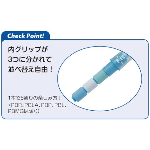 3つに分かれたカラフルな内グリップを、組み替えたり交換したりして、お気に入りの組合せを楽しめます。