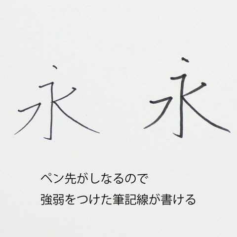 流れる様な曲線を生かしたフォルム。しなやかな書き味。インキがなくなる最後までみずみずしく書けます。