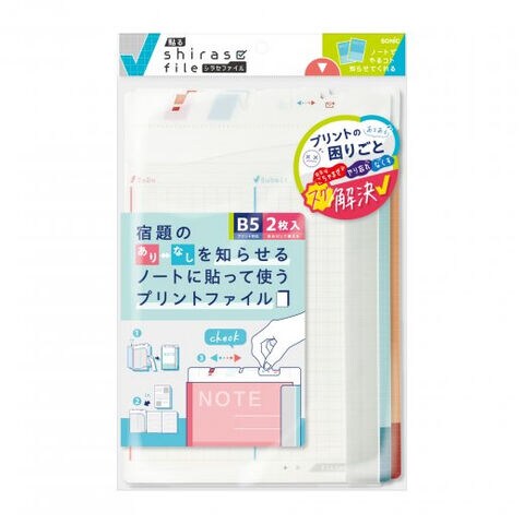 貼るシラセファイル B5ノート用 2枚入 B5プリント対応 1つ折り 宿題 整理 管理 提出 紛失防止 小学生 ソニック