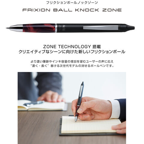 “濃く・長く”書ける次世代モデルの消せるゲルインキボールペン「フリクションボールノック ZONE (ゾーン)」です。