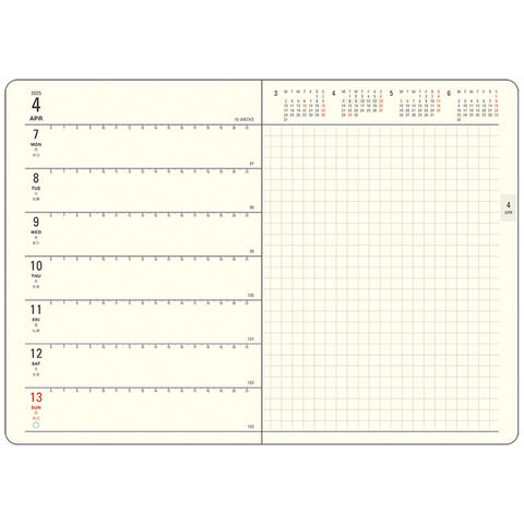 時間を区切って管理しやすい、時間軸が便利なレイアウト。営業職など1日に時間単位で複数の予定が入る方、隙間時間を見つけて効率をあげたい、細かく時間管理をしたい方などにおすすめです。