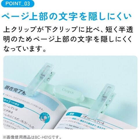 上クリップが下クリップに比べ短く、半透明のためページ上部の文字を隠しにくいです。