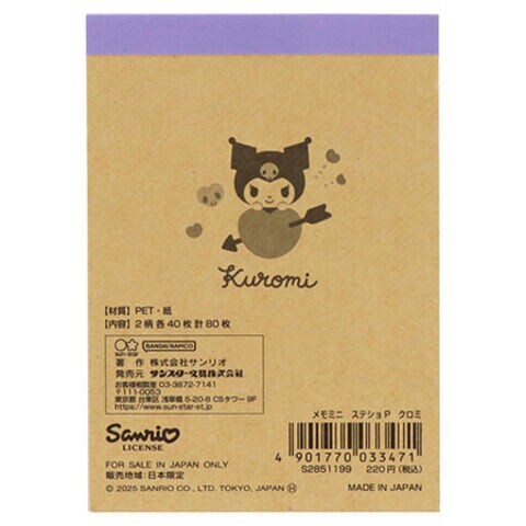 クロミ メモミニ 2柄×各40枚 PET表紙 ステショ・パステル サンリオ ジュニア 高学年 かわいい 日本製 サンスター文具