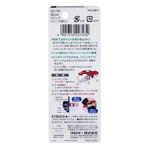 【1000円以上お買い上げで送料無料♪】クロバー 仮止めクリップ ミニ 10個入 - メール便発送