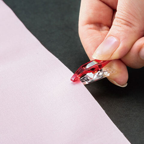 針が抜け落ちやすいチュール・オーガンジーなどの薄地素材や針で穴が開いてしまうラミネート生地・合皮・革など待針で止めにくい生地の仮止めに適しています。