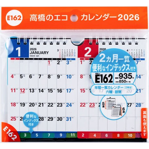 高橋書店 2026年 E162 エコカレンダー壁掛・卓上兼用 B7×2面