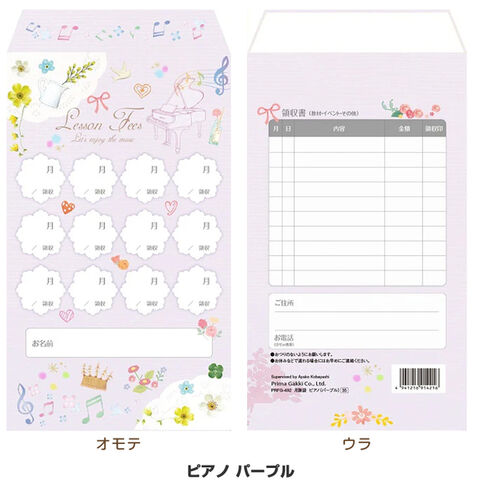 月謝袋 音楽とフラワー 5柄 各4枚 20枚セット ピアノ レッスン ネコ アリス 習い事 集金 封筒 かわいい 料金 家計簿 管理