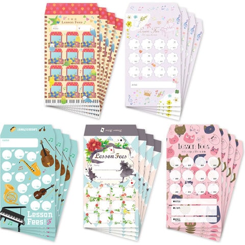 【送料無料】月謝袋 音楽とフラワー 5柄 各4枚 20枚セット ピアノ レッスン ネコ アリス 習い事 集金 封筒 かわいい 料金 家計簿 管理 - メール便発送