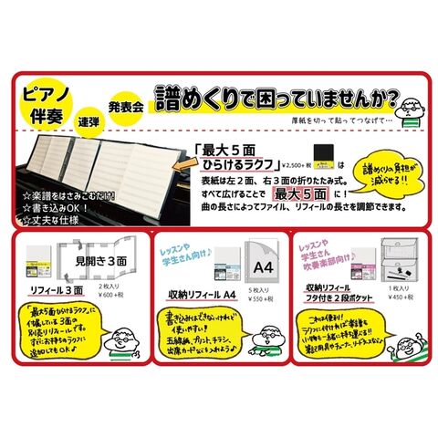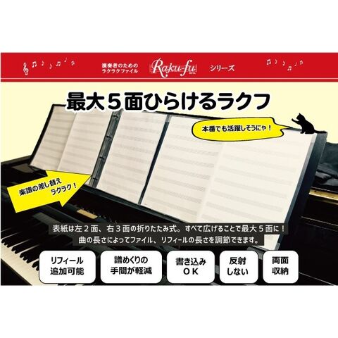 【送料無料】演奏者のためのラクラク楽譜ファイル 最大5面ひらける Raku-fu ラクフ A4 リフィール付 A3/3面 クープ - メール便発送