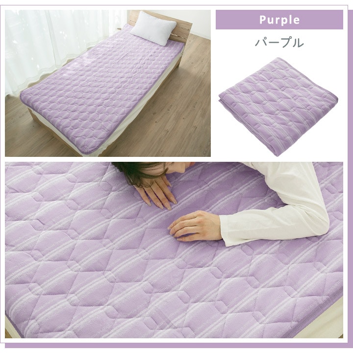 敷きパッド シングル タオル地 吸湿 放湿 なめらか敷きパッド さらさら 敷パッド 敷パット 敷きパット シングルサイズ 洗える 【パープル】