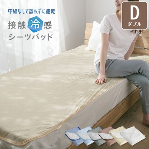 敷きパッド ダブル 夏 ひんやり 冷感 パッドシーツ 薄い 軽量 速乾 さらさら 敷パッド シーツ ダブルサイズ 【ベージュ】