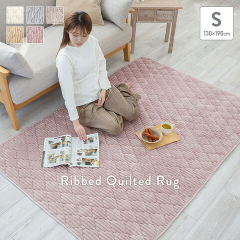 ラグ 1.5畳 洗える キルトラグ オールシーズン 130×190cm 防菌防臭 防ダニ 床暖房対応 滑り止め ホットカーペット対応 リブ調キルトラグ 【ダスティピンク】