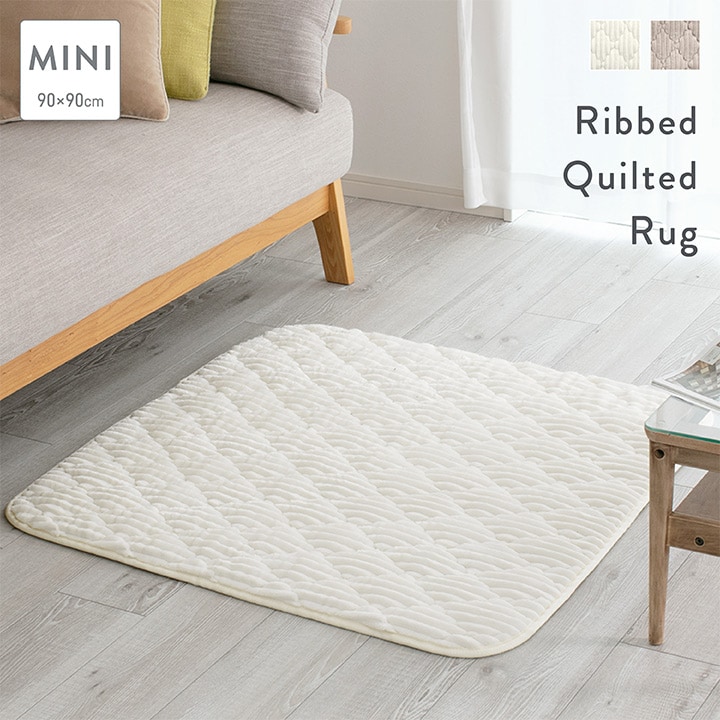 ラグ ミニ 洗える キルトラグ プレイマット ごろ寝マット キッズ オールシーズン 90×90cm 防菌防臭 防ダニ 床暖房対応 滑り止め ホットカーペット対応 リブ調キルトラグ 【ミルクアイボリー】