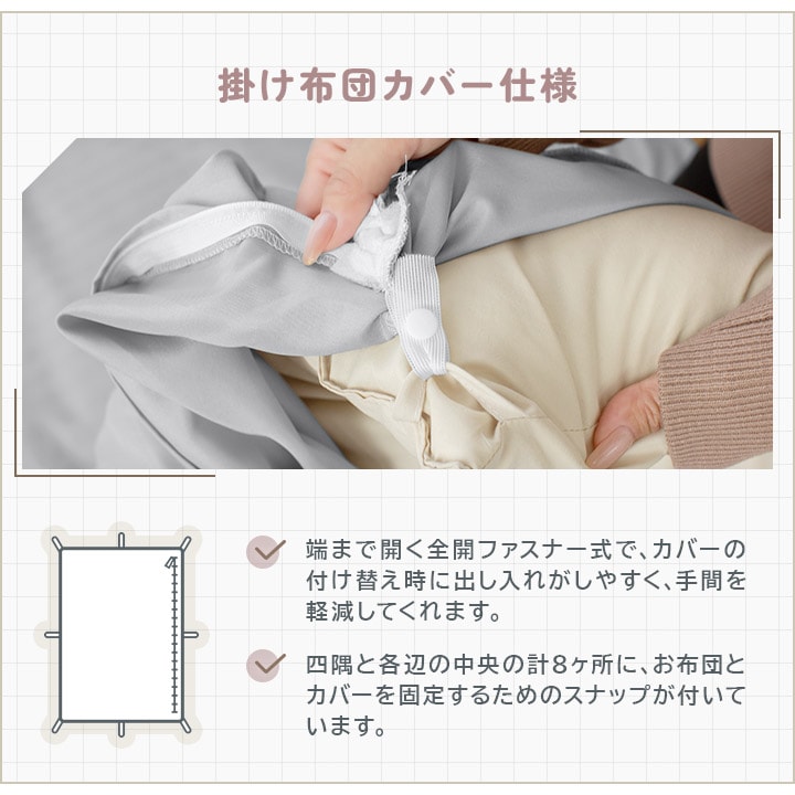 掛け布団カバー 抗菌防臭 シングル 布団カバー 150×210cm なめらか ピーチスキン 掛けカバー 掛カバー【無地ラテベージュ】組み合わせて使えるカバー