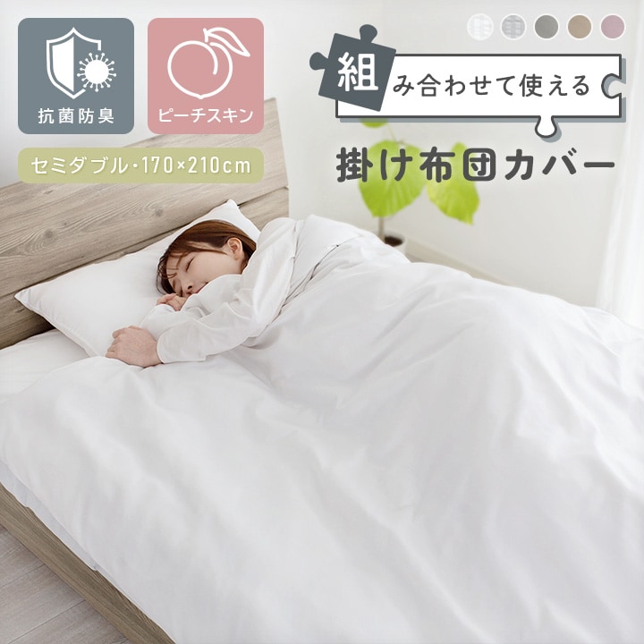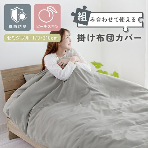 掛け布団カバー 抗菌防臭 セミダブル 布団カバー 170×210cm なめらか ピーチスキン 掛けカバー 掛カバー【無地アッシュグレー】組み合わせて使えるカバー