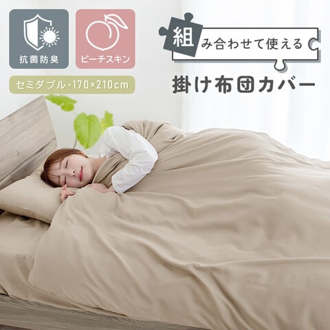 掛け布団カバー 抗菌防臭 セミダブル 布団カバー 170×210cm なめらか ピーチスキン 掛けカバー 掛カバー【無地ラテベージュ】組み合わせて使えるカバー