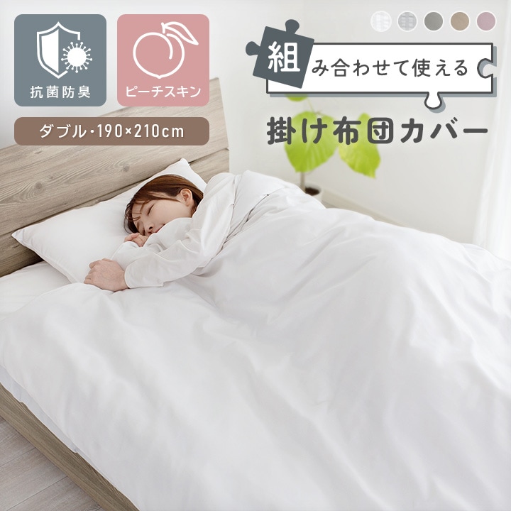 掛け布団カバー 抗菌防臭 ダブル 布団カバー 190×210cm なめらか ピーチスキン 掛けカバー 掛カバー【無地ラテベージュ】組み合わせて使えるカバー