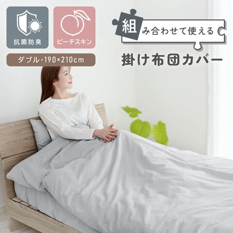 掛け布団カバー 抗菌防臭 ダブル 布団カバー 190×210cm なめらか ピーチスキン 掛けカバー 掛カバー【サテン調シルバー】組み合わせて使えるカバー