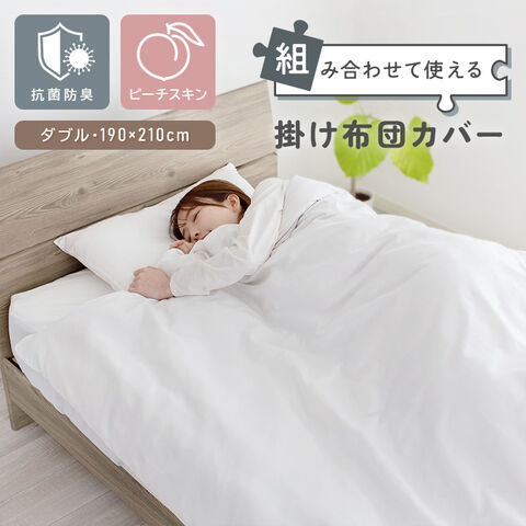 掛け布団カバー 抗菌防臭 ダブル 布団カバー 190×210cm なめらか ピーチスキン 掛けカバー 掛カバー【サテン調ホワイト】組み合わせて使えるカバー